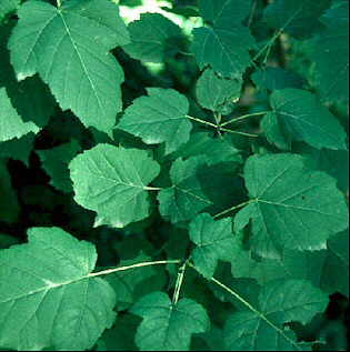 Descripción: Arbolito o gran arbusto arborescente caducifolio o a veces subpersistente, que puede alcanzar hasta 10 m de talla. Corteza lisa con líneas aterciopeladas. Visto de lejos recuerda a un majuelo. Hojas de ovadas a ovado-oblongas, de 5-10 cm de longitud y 3.5-6.5 cm de anchura. Pecíolo rojizo o blanquecino, acanalado. Margen irregular, doblemente aserrado. Base redondeada o cordada y ápice acuminado. Haz verde brillante y envés con pubescencia en las nerviaciones. Los ejemplares jóvenes presentan hojas con 3-5 lóbulos poco marcados. Flores blanco-verdosas en panículas erectas que aparecen en mayo o junio. Fruto en doble sámara rojiza con alas paralelas de 2-3 cm. Cultivo y usos: Se multiplica por semillas. Tolera suelos ligeramente ácidos o alcalinos. Exposición soleada o a media sombra. Crecimiento rápido. Sus abundantes frutos rojizos junto con las tonalidades otoñales de su follaje, le dan un gran valor ornamental. |