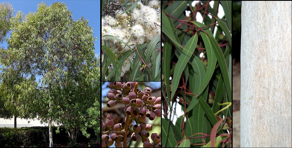 Descripción: Árbol siempreverde con porte muy recto, inicialmente estrecho, redondeándose con el paso del tiempo, que puede alcanzar 15-20 m de altura en cultivo, alcanzando en lugares favorables casi el doble de talla. Tronco con la corteza lisa, blanquecina, rosada o cobriza, a veces algo moteada, desprendiéndose en placas. Tallos juveniles redondeados en sección transversal, escábridos, con hojas pecioladas, opuestas en 3-5 pares y luego alternas, de ovadas a lanceoladas, de 14-21 x 4,5-8 cm, con la base generalmente peltada, de color verde pálido y ligeramente discoloras, escábridas, al igual que el pecíolo. Hojas adultas alternas, con los pecíolos amarillos, achatados, de 1-2,5 cm de longitud, de estrechamente lanceoladas a falcadas, de (7-)10-23 x 0,6-2,8(-3,5) cm, con la base estrechándose en el pecíolo, acuminadas en el ápice, de color verde brillante, concoloras, con la nerviación fina, paralela y densamente reticulada y numerosas glándulas oleíferas. Al estrujarlas despiden olor a limón (subsp. citriodora). Inflorescencias agrupadas en brotes cortos en las axilas de las hojas hacia el final de las ramillas, en grupos de 3(-5) flores, sobre pedúnculos redondeados de 3-7 mm de largo y pedicelos de 1-6 mm de largo. Yemas maduras de obovoides a piriformes, de 6-10 x 5-7 mm, verdosas o cremosas, lisas; opérculo de redondeado a cónico o ligeramente apiculado. Estambres inflexos, con los filamentos blancos y las anteras versátiles y dorsifijas, dehiscentes por hendiduras longitudinales. Ovario ínfero, trilocular, con numerosos óvulos; estilo largo. Frutos pedicelados, ovoides o urceolados, lisos, de 7-15 x 8-11 mm, de color marrón en la madurez, con 3 valvas inclusas. Semillas cimbiformes, no aladas, de color negro rojizo brillante, de 2,3-5 mm. Cultivo y usos: Gusta de suelos bien drenados, soportando muchos tipos, incluso pobres. Requiere climas libres de heladas, aunque puede soportar hasta 0 °C por poco tiempo, y de una exposición soleada. Aunque es resistente a la sequía gusta de algunos riegos en los primeros años. Se multiplica con facilidad por semillas, teniendo un crecimiento muy rápido. En zonas tropicales y subtropicales se planta mucho para la obtención de pulpa de papel. Su madera es pesada, fuerte, dura y resistente a las termitas. Se utiliza para la construcción en general, fabricación de traviesas de ferrocarril. suelos, postes, artículos deportivos, herramientas agrícolas y mangos de herramientas. De sus hojas se extrae un aceite con importancia medicinal, como antiséptico y para aliviar resfriados, y también tiene usos industriales. |