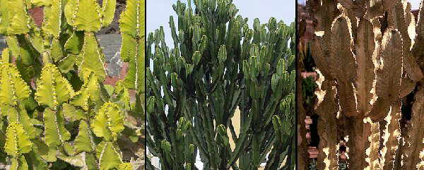 E. neriifolia, E. undulatifolia y E. trigona |