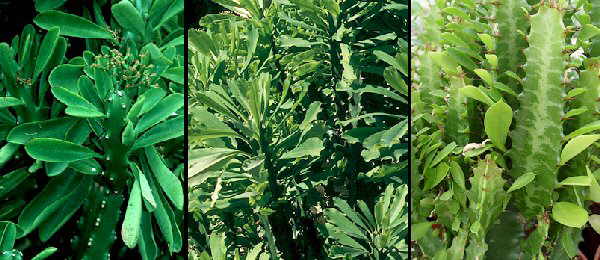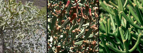 E. stenoclada, E. enterophora y E. tirucalli |