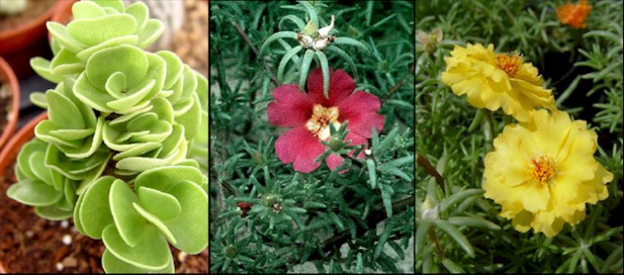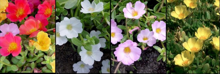 Portulaca molokiniensis y Portulaca grandiflora de flor sencilla y doble |