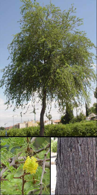 0,5-3,5 cm de largo, amarillas. Hojas bipinnadas, con un par de pinnas de 3-4 cm de