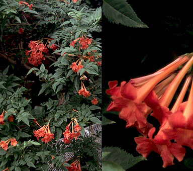Descripción: Arbusto de 2-4 m de altura con las ramillas diminutamente pubescentes. Hojas pinnadas, con 5-9 folíolos de lanceolados a estrechamente oblongo-elípticos, de 1-5 x 0,5-1,5 cm, el terminal a menudo un poco mayor; tienen el ápice agudo y la base cuneada, siendo el margen diminutamente aserrado. Raquis de la hoja acanalado o ligeramente alado. Inflorescencias en racimos terminales, con flores de cáliz 5 dentado y corola estrechamente tubular-infundibuliforme, roja o rojo-anaranjada, de 4-5 cm de longitud, con los márgenes de los lóbulos ondulados; estambres subexertos. Fruto en cápsula linear con el cáliz persistente, de 7-11 cm de largo, conteniendo semillas delgadas, bialadas. Cultivo y usos: Se multiplica por semillas con facilidad. Requiere exposición soleada o a media sombra y suelos de tipo medio y con buen drenaje. |