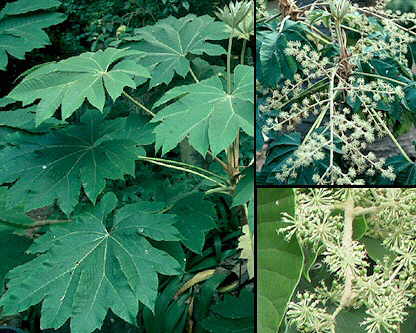 Descripción: Arbusto o arbolito de hasta 4 m de altura, generalmente cubierto con tomento de pelos estrellados. Hojas más o menos redondeadas, de 15-30 cm de largo, con 7-12 lóbulos ovado-oblongos, agudos o acuminados; son de textura algo coriácea, con el margen entero o toscamente aserrado, glabras en el haz y pubescentes en el envés. Pecíolo glabro, de hasta 50 cm de longitud. Estípulas de 5-12 cm de longitud, glabras, unidas a la base del pecíolo. Inflorescencias terminales, con numerosas umbelas de hasta 2 cm de diámetro. Flores masculinas sobre pedicelos de 3-5 mm de largo; flores femeninas sobre pedicelos de 6-8 mm de largo. Cáliz cubierto de tomento de pelos estrellados; pétalos triangulares, de unos 2 mm de longitud, con tomento en la parte externa. Estambres con los filamentos de unos 3 mm de longitud. Ovario tomentoso. Fruto esférico-achatado, de unos 2-4 mm de diámetro, de color negro purpúreo en la madurez. Cultivo y usos: Se multiplica por semillas, por división y por esquejes. Requiere cultivo a pleno sol o sombra parcial, no siendo demasiado exigente en suelos. Poco tolerante a las sales. En el jardín da aspecto tropical. De la médula de la planta se obtiene el denominado "papel de arroz", con el que se confeccionan flores artificiales en China. |