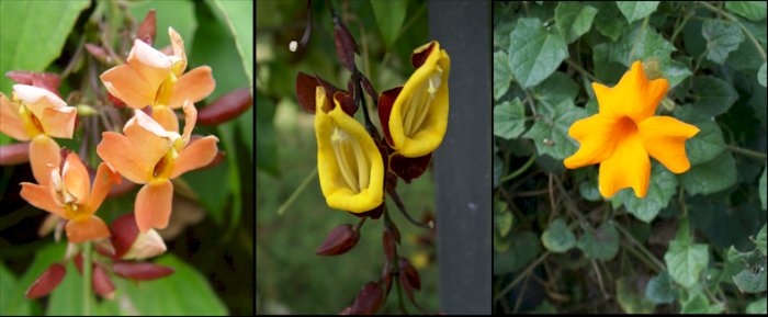 Thunbergia coccinea, Thunbergia mysorensis y Thunbergia gregorii |