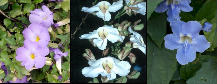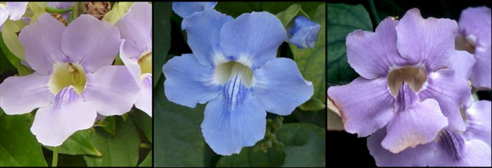 Varias tonalidades de color de la flor de Thunbergia grandiflora |
