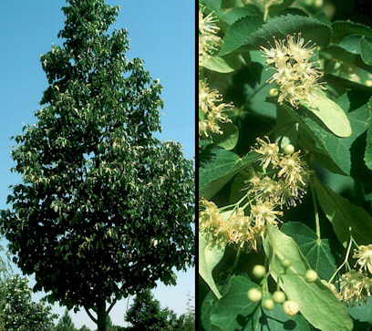 Descripción: Árbol caducifolio que puede alcanzar 30 m de talla, con la corteza lisa, grisácea, que se agrieta longitudinalmente con la edad. Las hojas son oblicuamente acorazonadas, de 3.5-7.5 cm de longitud y otro tanto de anchura, con el pecíolo delgado. Tienen el ápice acuminado y el margen finamente dentado-aserrado. Son glabras y de color verde oscuro en el haz y glauco en el envés, con un manojo de pelos rojizos en las axilas de las nerviaciones. Las flores son blanco amarillentas, aromáticas, y se disponen en cimas de 6-10 flores. Pedúnculo soldado hasta la mitad a una bráctea foliácea de color blanquecino verdoso y 3.5-8.5 cm de longitud. El fruto es globoso, seco, indehiscente, unilocular, sin costillas, cubierto de un tomento grisáceo. Mide unos 6 mm de diámetro. Cultivo y usos: Se multiplica por semillas. Buen árbol de sombra bien adaptado a las ciudades, que requiere suelos de tipo medio, neutros o ligeramente ácidos. Su madera tiene varias aplicaciones. Las hojas se utilizan para adulterar el tabaco. Sus flores son medicinales y proporcionan una buena miel. Su corteza produce una buena fibra. Se cultivan las variedades Cordifolia y Pyramidalis. |
