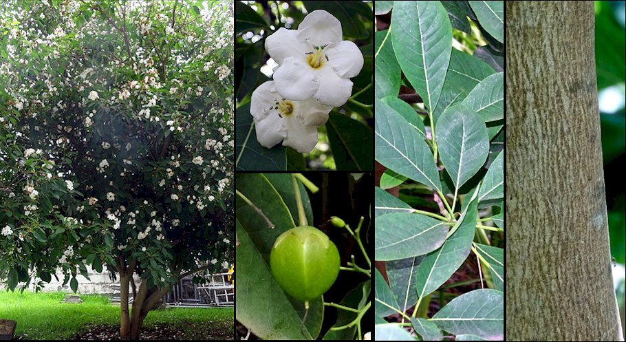 Descripción: Árbol siempreverde de 3-10 m de altura en cultivo, alcanzando mayor talla en sus lugares de origen, con una copa más o menos globosa de color verde oscuro y follaje colgante, con un tronco ramificado a poca altura, o con varios troncos, con la corteza bastante lisa, parda o marrón grisácea, con finas fisuras verticales, descamándose con la edad. Ramas y ramillas glabras o casi glabras. Hojas alternas, de elípticas a obovadas u ovadas, de 2,5-13 x 1,2-8 cm, con la base atenuada o redondeada, el margen entero, a veces algo ondulado, y el ápice acuminado o agudo. Son de textura membranácea, glabras por el haz y glabras o glabrescentes por el envés, con una nervadura bien marcada con 8-10 pares de nervios laterales secundarios. Pecíolo glabro o puberulento, de 1,5-4 cm de longitud. Inflorescencias en cimas o panículas terminales de 5-12 cm de diámetro, con brácteas elípticas de 2,5-6,5 cm de largo y bractéolas linear-lanceoladas o elípticas de hasta 6 mm de largo, portando 15-25 flores blancas, olorosas, sobre pedicelos de 6-8 mm de largo. Cáliz acampanado, de 7-15 x 3,5-6 mm, verde, con 5 lóbulos desiguales, triangulares, de 3-4,5 mm, glabro externamente y seríceo y con el margen de los lóbulos tomentosos por dentro; corola rotácea, de 2-2,5 x 1,4-1,6 cm, glabra, con un tubo de 4-7,5 mm de longitud y 5 lóbulos anchamente obovados, redondeados u obtusos. Androceo con 5 estambres exertos, con los filamentos de 8-14 mm, seríceos en el punto de inserción, y las anteras de 2-4 mm de largo. Ovario cónico, glabro, con estilo exerto de 9-15 mm de largo, con 3 ramas estilares y estigmas discoides. Fruto esquizocárpico de aspecto drupáceo, ovoide, verdoso-amarillento, de 9-13 x 8-11 mm, que se separa cuando está seco en 4 mericarpos de 8 x 4 mm. Cultivo y usos: Árbol que requiere de suelos bien drenados, medianamente fértiles, en exposiciones iluminadas o con algo de sombra, tolerando bastante bien la sequía una vez establecido. Florece durante casi todo el año. Árbol utilizado en rituales y con fines medicinales por los antiguos mexicanos. En Guatemala se hace un té con sus flores secas, atribuyéndole propiedades tranquilizantes y analgésicas, así como efectos antimicrobianos y antiinflamatorios. Se multiplica por brotes basales y por raíces, ya que sus semillas (pirenos) al parecer germinan muy mal. Especie vulnerable y en peligro de extinción. |