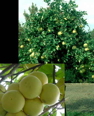 Descripción: Arbol de 3-4 m de altura de copa frondosa y redondeada, con las ramillas al principio angulosas y hojas ovaladas de 8-12 cm de longitud, de ápice agudo o redondeado. Flores solitarias o en grupos, de 4-5 cm de diámetro. Frutos en racimos, de 10-15 cm de diámetro, con la piel delgada de color amarillo. Cultivo y usos: Se multiplica por injerto sobre patrón de limonero o naranjo amargo. La pulpa del fruto es comestible, utilizándose en zumos. |