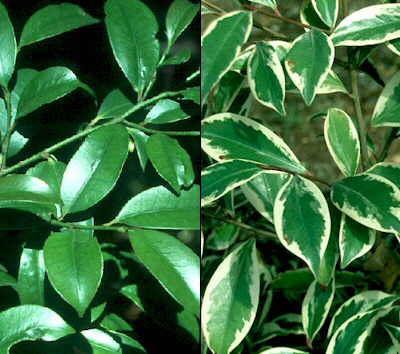 Descripción: Arbusto o arbolito perennifolio que puede llegar a alcanzar los 5 m de altura, con ramillas rígidas, lampiñas, extendidas. Hojas coriáceas oblongo-lanceoladas, de 4-10 cm de longitud, con el ápice obtuso y la base cuneada. Tienen el margen entero y su lámina es de color verde oscuro reluciente en el haz y algo más pálido en el envés. Flores de color blanco o blanco-amarillento, de alrededor de 1,2 cm de diámetro, aromáticas, sobre pedicelos de 8-12 mm de longitud. Nacen solitarias o en grupos en disposición axilar. Tienen 5 sépalos, 5 pétalos gruesos y numerosos estambres. Cultivo y usos: Se multiplica por esquejes de madera semidura normalmente. Requiere sol o sombra parcial y suelos húmedos, fértiles y ácidos. Un cultivar muy extendido es 'Fortunei', con hojas agudas variegadas de crema y rosa hacia los bordes. |