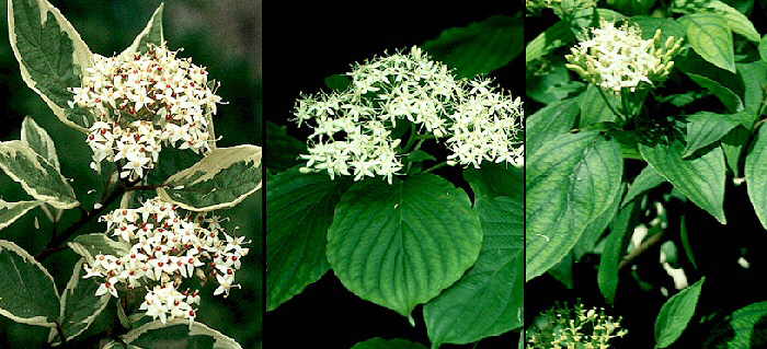 | Cornus alba 'Elegantissima', Cornus alternifolia y Cornus bretschneideri |