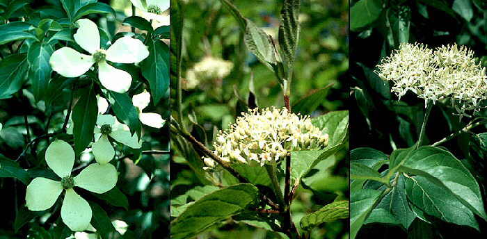 | Cornus capitata, Cornus florida y Cornus pumila |