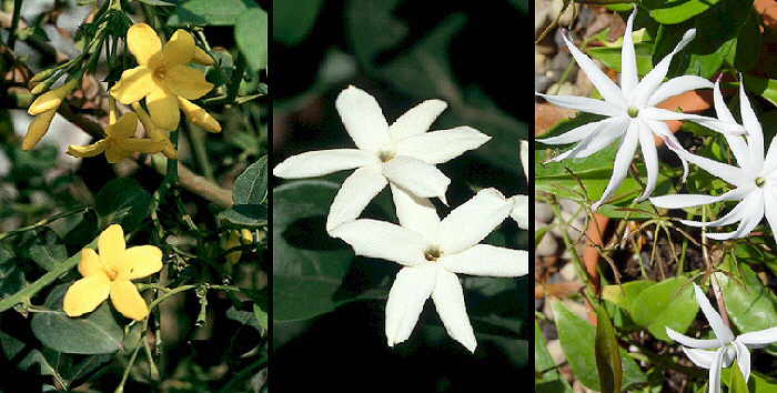 Jasminum humile, Jasminum sambac, Jasminum nitidum |