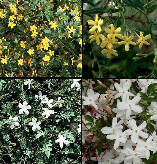 Jasminum fruticans, Jasminum odoratissimum, Jasminum officinale y Jasminum polyanthum |
