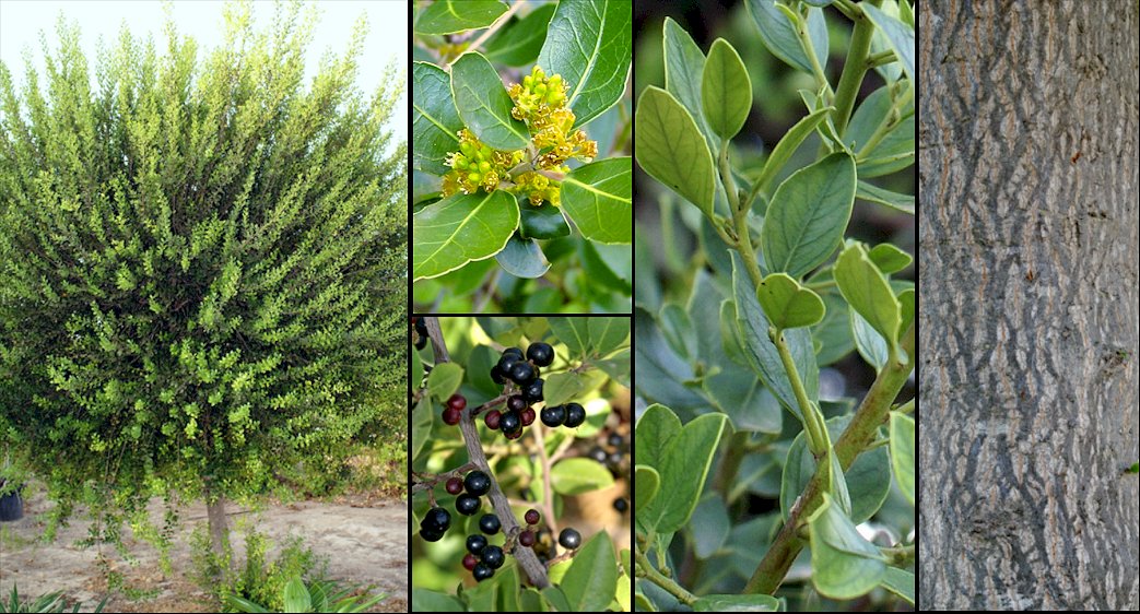 Descripción: Arbusto o arbolillo dioico, siempreverde, sin espinas, muy variable, que puede alcanzar 5-8 m de altura, con la copa más o menos globosa y, siempre que se le ayude mediante la poda de formación, con un solo tronco de corteza inicialmente lisa y grisácea, que se va agrietando y estriando con la edad. Ramillas normalmente glabras, algo rojizas de jóvenes, con yemas desnudas. Hojas alternas, con la lámina desde lanceolada a ovada u oblonga, de 2-6(-8) x 1-3,5(-5,5) cm, con la base cuneada, el margen dentado con dientes diminutos o casi entero y el ápice obtuso o acuminado y mucronado; son de textura coriácea, de color verde oscuro mate o reluciente por el haz y más pálidas por el envés, glabras, salvo a veces en las axilas de las nerviaciones del envés. Nervadura con 4-6 pares de nervios laterales. Pecíolo de 2-8(-10) mm de largo, glabro o peloso. Estípulas triangulares, de 1-2,5 mm de largo, pronto caedizas. Inflorescencias racemosas, axilares, agrupadas en braquiblastos o esparcidas por las ramillas del año, las masculinas con 4-20 flores y las femeninas con 4-10 flores. Flores amarillo-verdosas, de 3,5-6,5 mm de diámetro, unisexuales, a menudo carentes de pétalos, sobre pedicelos de 1-2 mm de largo. Cáliz urceolado, con (4-)5 lóbulos lanceolados, agudos, erectos en las flores femeninas y reflexos en las masculinas. Androceo con 4-5 estambres alternisépalos, con los filamentos muy cortos. Ovario con 2-4 lóculos con 1 rudimento seminal por lóculo. Estilo con 2-3 ramas estilares. Fruto drupáceo, más o menos globoso, de 4-7 mm de diámetro, algo carnoso, glabro o peloso, rojizo, tornándose negruzco en la madurez. Contiene de 2 a 4 semillas pardo-rojizas, lustrosas, de 4-5,5 x 2,5-3 mm, con un surco en su cara interna. Cultivo y usos: Se multiplica por semillas, que tienen algo de letargo interno y requieren de estratificación antes de la siembra. También por esquejes con hormonas de enraizamiento. Especie muy resistente y adaptable, que tolera casi toda clase de suelos, ácidos a alcalinos, secos o húmedos. Su madera es pesada y dura, siendo empleada en ebanistería y tornería. Como ornamental suele emplearse como arbusto más que como arbolito, a menudo formando setos o figuras pues admite muy bien el recorte. Es planta con algunas propiedades medicinales, su corteza es purgante y las hojas son astringentes, utilizándose en gargarismos. |