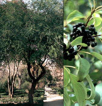 Descripción: Arbusto o arbolillo caducifolio de hasta 10 m de altura, con las hojas simples, alternas o a veces opuestas, de oblongas a ovales, cuneadas en la base y acuminadas en el ápice. Miden 3.5-10 cm de longitud y 2-3.5 cm de anchura. El margen está finamente dentado. El limbo es glabro o algo pubescente en el envés. Flores pequeñas, verdosas, dispuestas en racimos axilares densos. Frutos esféricos de alrededor de unos 6 mm de diámetro, negruzcos. Cultivo y usos: Se multiplica por semillas. Requiere suelos algo ácidos. Se utiliza escasamente en jardines. Sus hojas producen un tinte verde que es empleado en China para teñir el algodón y la seda. |