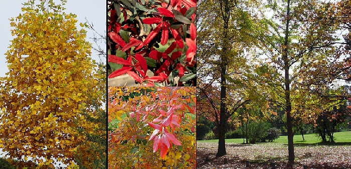 Las hojas de muchas especies de árboles y arbustos caducifolios toman bellas coloraciones otoñales que desde el punto de vista paisajístico son muy interesantes |