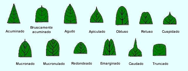 Seleccione directamente sobre la imágen de la hoja de más abajo para ver las diversas denominaciones según la forma del margen, del ápice, de la lámina, etc.